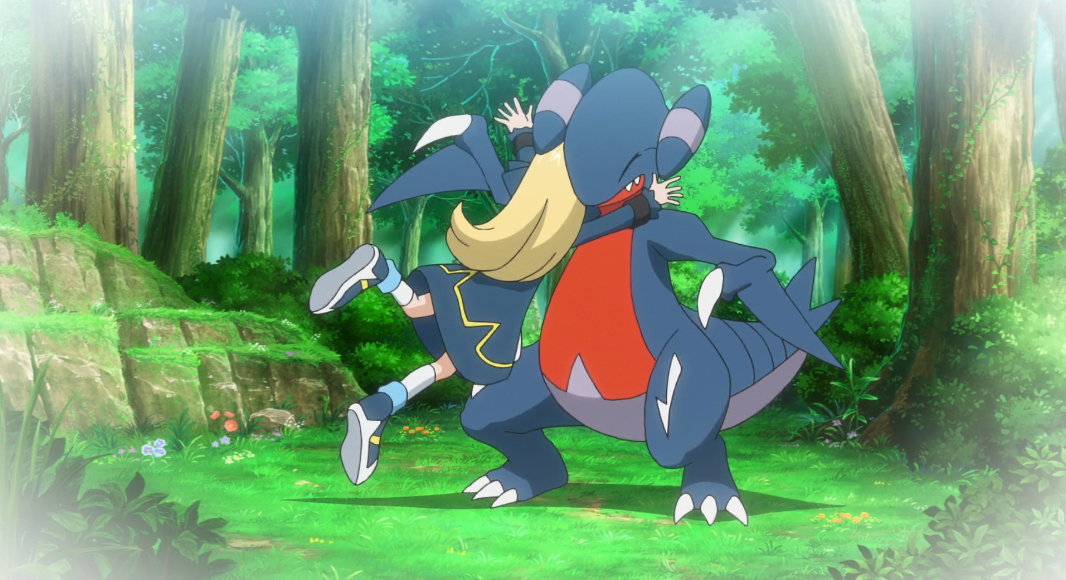 Als letztes Pokémon bleibt nun noch Knakrack für Cynthia übrig, welches bereits zuvor gekämpft hat und das Kampffeld mit einem lauten Brüllen betritt. Sowohl Mega-Lucario von Ash als auch Knakrack sind bereits während ihren vorherigen Kämpfen von gegnerischen Attacken getroffen worden. Während Ash sein Mega-Lucario mit einem lauten Zuruf anfeuert, erzählt Cynthia ihrem Knakrack, dass der Kampf gegen Ash sie an ihre Kindheit erinnere, in der sie gemeinsam mit ihrem Knakrack, welches damals noch ein Kaumalat war, Barschwa geangelt hat, Abenteuer erlebt hat und besonderen Legenden rund um Dialga und Palkia am Platz der Treue nachgegangen ist.