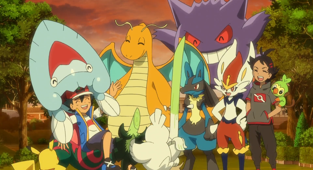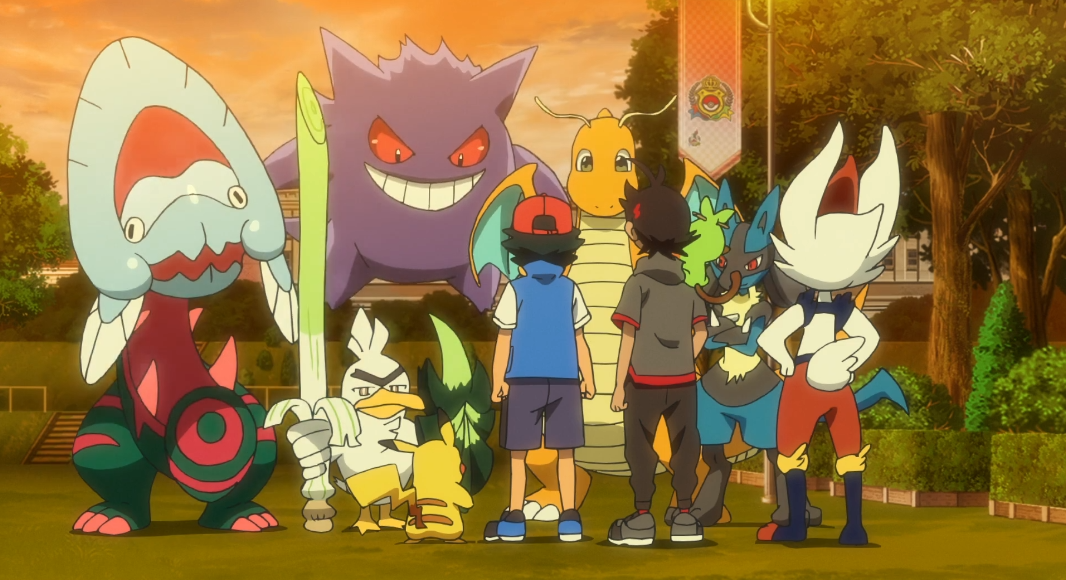 Auf dem Vorplatz des Score City Stadions holt Ash sein gesamtes Team aus den Pokébällen und bedankt sich bei seinen Pokémon für den tollen Kampf. Gemeinsam freuen sie sich über den Sieg und nehmen sich vor auch das Finale der Pokémon-Krönungs-Weltmeisterschaften gegen Delion zu gewinnen.