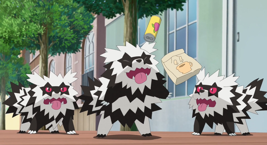 Wieder werden sie plötzlich unterbrochen: Die Galar-Zigzachs sind zurückgekommen, um den Kleptifux von dem Trio um Mauzinger zu berichten. Im selben Augenblick ertönt erneut der Schrei einer Frau, als sich eben jenes Trio deren Handtasche schnappt. Auch die Taschen zweier weiterer Passant:innen fallen ihnen zum Opfer. Der Imbissbesitzer berichtet, dass Mauzinger und die beiden Galar-Mauzi erst kürzlich aufgetaucht seien. Als diese die Galar-Zigzachs erneut attackieren, stellen sich die Kleptifux ihnen in den Weg. Das Mauzinger ruft seine Weggefährten daraufhin zum Rückzug auf, wobei sie sämtliches Diebesgut, verfolgt von den Kleptifux, mitnehmen. Ash, Goh und Liberlo versuchen ihnen noch durch die Gassen zu folgen, verlieren sie jedoch aus den Augen.