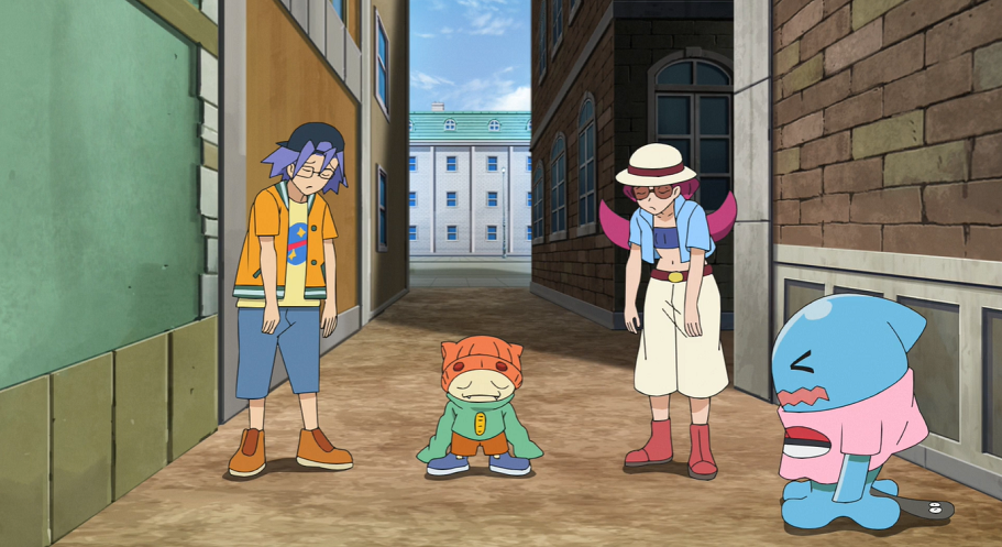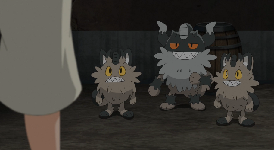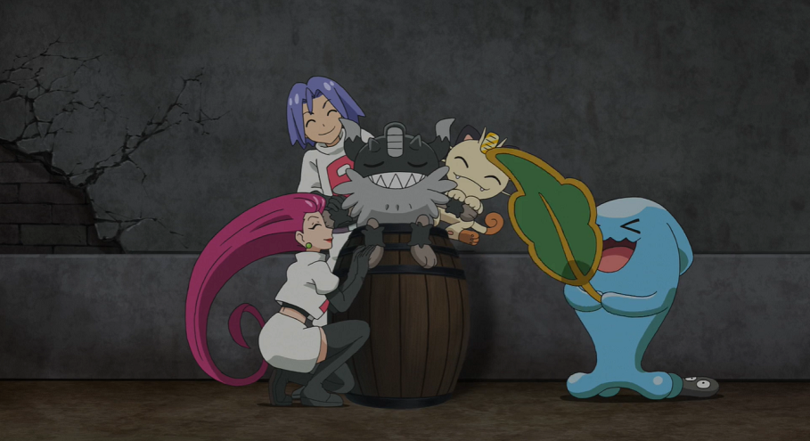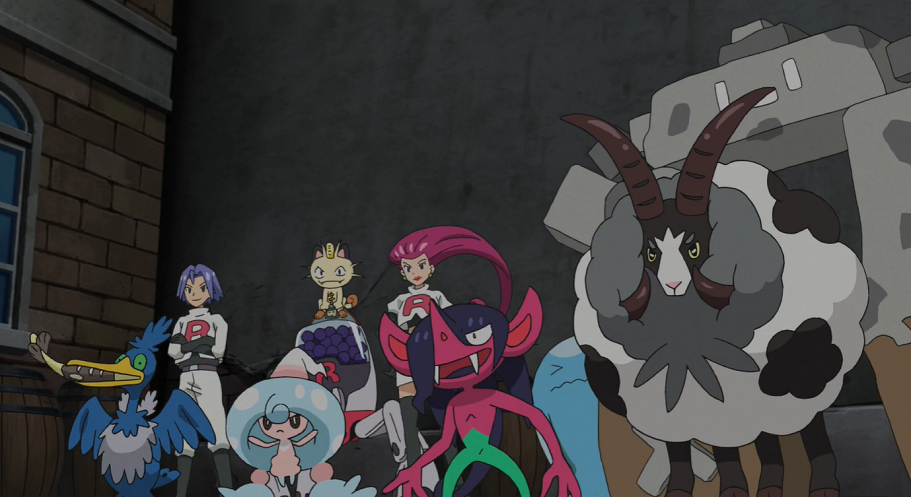 In der Gasse machen sich Team Rocket und das Trio um Mauzinger über das Diebesgut her. Allerdings scheint nun nicht Mauzinger sich Team Rocket angeschlossen zu haben, sondern umgekehrt: In der Hoffnung auf weitere Erfolge umgarnt Team Rocket das Pokémon.