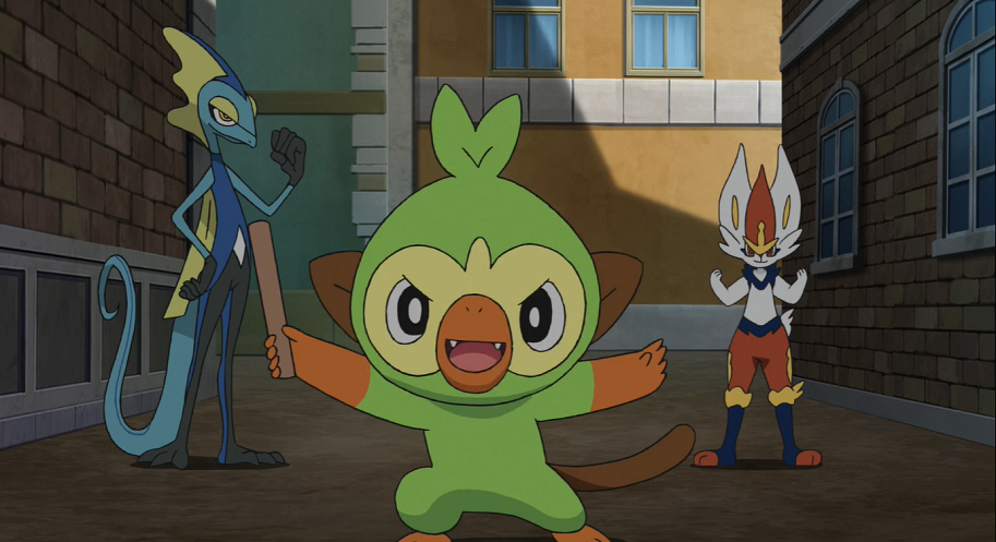 Plötzlich unterbricht der Schrei einer Frau das Gespräch. Diese wird von drei Galar-Zigzachs angegriffen, welchen es gelingt, ihr eine eben gekaufte Tüte voller Scones zu entreißen. Doch die drei Diebe kommen nicht weit, da sich ihnen drei Kleptifux in den Weg stellen, wovon ihnen eines die Tüte blitzschnell wieder abnimmt. Liberlo und Goh erkennen in den Kleptifux Liberlos alte Wegbegleiter wieder, die mit ihm als Hopplo eine Gruppe gebildet hatten. Die Kleptifux geben der bestohlenen Frau die Tüte wieder zurück, die sich daraufhin mit einem Scone bei ihnen bedankt. Auch andere Menschen, die das Geschehen verfolgt haben, bedanken sich mit Beeren bei den Kleptifux dafür, dass diese stets zur Hilfe kämen. Die ernüchternden Galar-Zigzachs sehend, geben die Kleptifux diesen von dem erhaltenen Futter etwas ab, womit diese glücklich davonziehen.