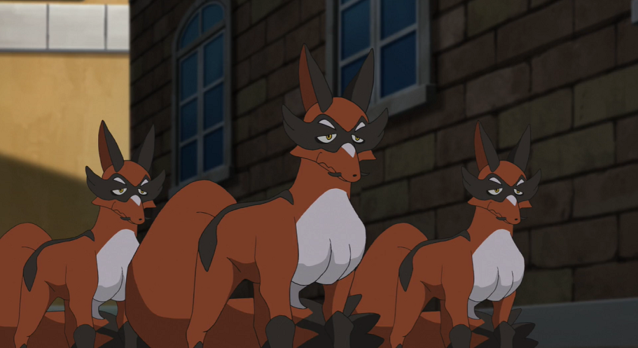Die Galar-Zigzachs sind mit dem von den Kleptifux erhaltenen Futter in den Gassen der Stadt verschwunden. Dort treffen sie auf zwei Galar-Mauzi sowie ein Mauzinger, die sich ihnen in den Weg stellen.