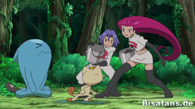 ebenfalls keine Wirkung zeigt, bemerken Jessie und James, dass die beiden Pokémon etwa gleich stark sind. Anschließend