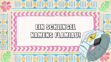 Ash verabschiedet sich von Professor Kukui und läuft zur Schule. Auf dem Weg begegnet ihm Flamiau, das sich ihm nähert und schließlich seinen Kopf an Ashs Bein reibt. Er denkt, es habe Hunger und möchte ihm einen Teil von seinem Sandwich abgeben. Flamiau schnappt sich jedoch das größere Stück und flüchtet mit diesem erfolgreich. In der Stadt nimmt es mehrere Abzweigungen und steht plötzlich einem Alola-Snobilikat gegenüber. Dieses greift Flamiau an und entreißt ihm dadurch das Sandwich. Flamiau kontert mit einer Glut, die das Sandwich im Gefecht zu Asche werden lässt und es läuft schließlich vor seinem Gegner davon.