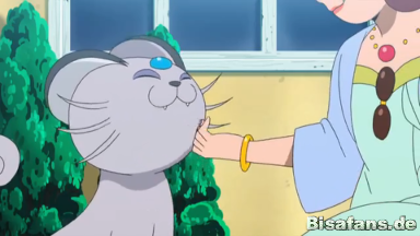 Als sie sich um Ashs Blessuren kümmern möchte, schnappt sich Flamiau die Beere und flüchtet aus dem Pokémon Center.