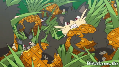 verdächtigt dabei Kapu-Riki. Als Ash das Herrscher-Pokémon fragt, ob es gegen die Rattfratz und Rattikarl hilft, lacht es hämisch.
