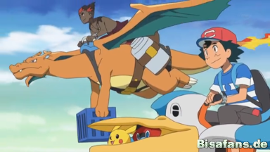 Sie bemerken plötzlich Kiawe, der mit seinem Glurak über den Morgenhimmel fliegt und eine Lieferung Kuhmuh-Milch überbringen möchte.