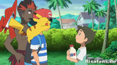 Als Ash fragt, ob sie viele Miltank haben, erwidert Kiawe, dass sie auch Tauros und Pampuli besitzen. Voller Tatendrang möchte Ash Kiawe begleiten