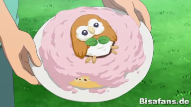 sonderlich erfreut darüber erhält er von Kiawes Mutter Sima ein Handtuch zum Abtrocknen. Sie erzählt freudig über die Pokémon auf der Farm und