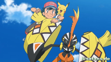 Nach einiger Zeit sind Ash und Pikachu bereit ihren Z-Kristall einzusetzen und Pikachus Z-Attacke Gigavolt