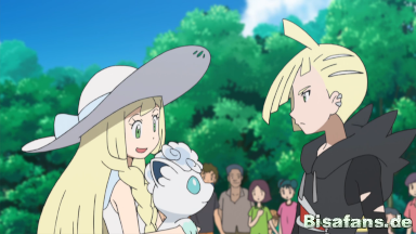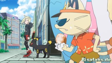 Nach der Schule geht Ash mit seinen Pokémon in der Stadt einkaufen und entdeckt auf dem Weg dorthin, dass der geheimnisvolle Trainer gegen ein Turtok kämpft. Er gewinnt den Kampf mühelos, was Ash beeindruckend findet. Er spricht den blonden Trainer direkt an und will ihn zu einem Kampf herausfordern, jedoch werden sie von Lilly unterbrochen, die Gladio als ihren großen Bruder vorstellt. Nach einem kurzen Gespräch verschwindet er jedoch wieder, sagt aber, dass er sich überlegen würde, gegen Ash zu kämpfen.