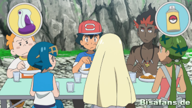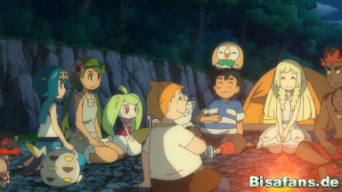 Chrys findet schließlich Bubungus, welches kurz darauf durch das Camp springt und alles erkundet. Lilly erklärt währenddessen, dass sie einen Top-Schutz benutzt habe und deshalb nicht hungrig geworden wäre. Ash bietet dem Bubungus schließlich an, die Energie aus ihm zu ziehen, um sich mit dem Pokémon zu befreunden. Um nicht einzuschlafen, isst er durchgehend Curry, welches ihm mehr Energie gibt, als Bubungus aussaugen kann. Zufrieden liegen beide mit vollgefressenen Mägen auf dem Campingplatz.