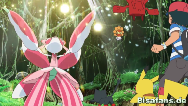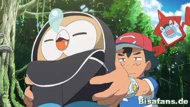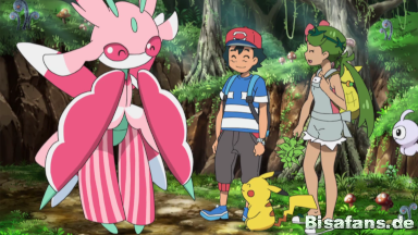 Voller Motivation machen sich alle auf zu den Stellen, an denen es die Zutaten wahrscheinlich gibt. Ash und Maho versuchen auf die Spitze eines Berges zu gelangen, um dort Magobeeren von einem Baum zu pflücken. Doch ihnen versperren einige Imantis den Weg, weshalb sie sich um die Pokémon herumschleichen müssen. An der Spitze angekommen wecken sie die Imantis aus Versehen auf, weshalb Ash sich schnell eine Magobeere schnappt und mit Maho davon rennt. Kurz danach finden Maho und Ash ohne Zwischenfälle Vitalkräuter in einer Felsspalte, die sie mit Pikachus Hilfe erreichen können.