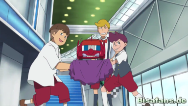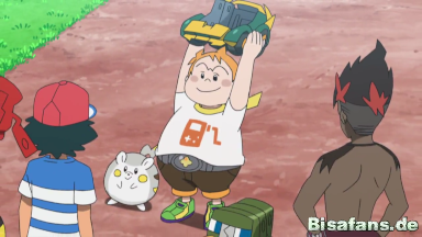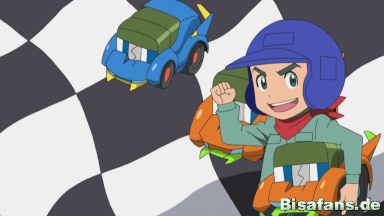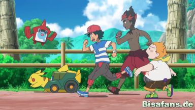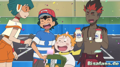 Nach einem knappen Rennen schaffen es Kiawe, Chrys und Ash den ersten Platz des Rennen für sich zu behaupten und können ihren Sieg gemeinsam feiern.