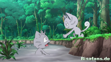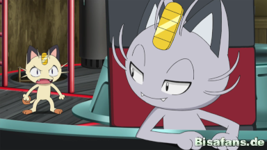 Mauzi gefällt es gar nicht, dass das Alola-Mauzi sich durch vorgespielte Nettigkeit die Gunst von Jessie und James erlangen möchte, doch die beiden bemerken dies nicht und freuen sich über den unerwarteten Neuzugang. Mauzi sagt dem Alola-Mauzi schließlich, dass sie sich am Tor der Trainerschule zu einem Gespräch treffen sollten.