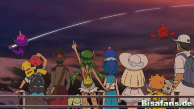 Gemeinsam sind die Schüler mit Professor Kukui auf dem Weg zur Hokulani-Sternwarte auf Ula-Ula, als sie eine Sternschnuppe am Himmel sehen, woraufhin sich die Schüler etwas wünschen. Chrys klärt die anderen darüber auf, dass es sich dabei nicht um Sternschnuppen, sondern um Meteno, im Weltall lebende Pokémon, handele. Professor Kukui möchte mit den Schülern in der Sternwarte eine seltene Gelegenheit nutzen und die Meteno beobachten.Vor der Sternwarte werden sie bereits von Chrys‘ Cousin Marlon erwartet.