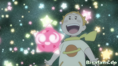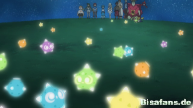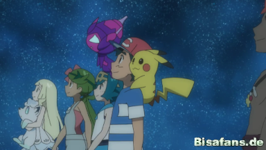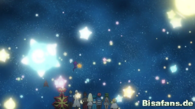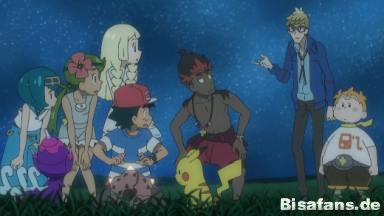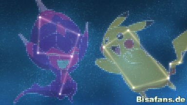 Gemeinsam suchen sie am Himmel nach den Sternbildern ihrer Pokémon. Tracy erkennt das Sternenbild von Rayquaza.