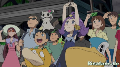 Unter Tränen verabschiedet es sich von Ash und Pikachu und erinnert sich an die schöne Zeit und die Abenteuer, die sie zusammen verbracht haben. Sie kehren zurück nach Mele-Mele, um dort ihr alltägliches Leben erneut aufzunehmen.