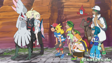 Oben angekommen treffen Ash und seine Freunde auf die vier Schutzpatronen der Inseln Alolas: Kapu-Kime, Kapu-Fala, Kapu-Riki und Kapu-Toro. Sie scheinen sie bereits erwartet zu haben.