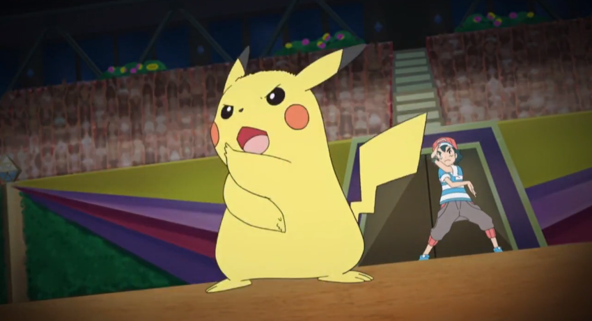 Als zweites und letztes Pokémon schickt Ash nun Pikachu in den Kampf gegen Tectass. Bromley erinnert Ash an ihren letzten Kampf, als