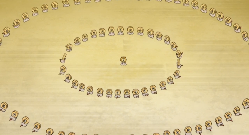 andere Meltan aus der Umgebung zu sich ruft. Diese bilden einen großen Kreis um Ashs Meltan und beginnen