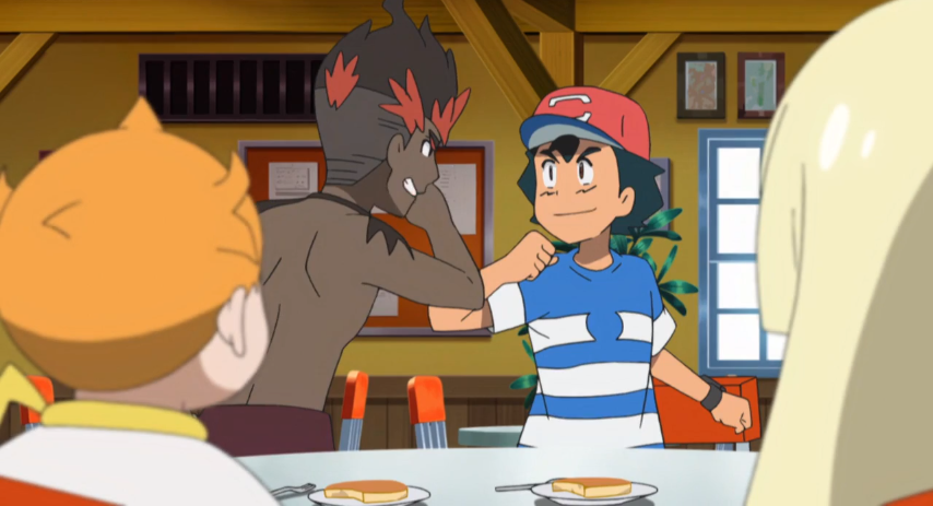 Kiawe berichtet unterdessen Ash, dass er Mayla als Schiedsrichterin für ihren geplanten