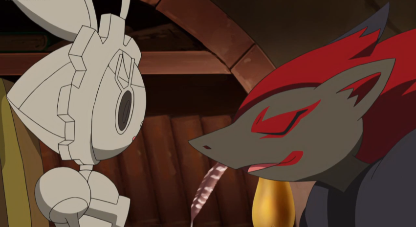 Zoroark erinnert sich gleich an Mohns Arbeitszimmer und erkennt auch das Magearna