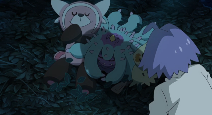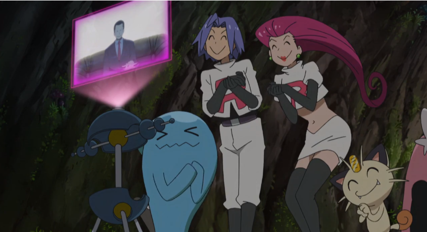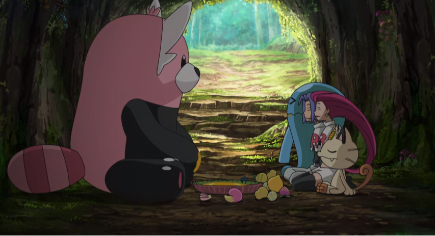 Team Rocket ist zurück im Geheimversteck von Kosturso, mit dem sie gerade essen,