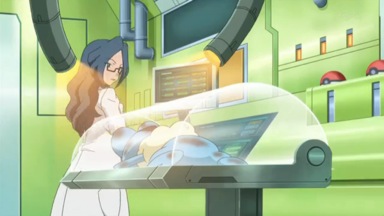 Der Professor erzählt ihnen, dass er an einer bestimmten Form der Entwicklung von Pokémon forscht, die es eigentlich schon voll entwickelten Pokémon erlaubt, sich noch einmal zu entwickeln. Deswegen lebt auch Knakrack im Labor, da auch es zu den Pokémon gehört, die sich noch einmal entwickeln können sollten. Dies wird allerdings von Team Rocket belauscht, die ihre Chance sehen, so ein besonders starkes Pokémon zu bekommen, dass ihnen helfen könnte andere Pokémon zu klauen. Sie verkleiden sich als Professoren und kommen so ins Labor, was allerdings von Froxy bemerkt wird, das Team Rocket erkennt. Es läuft zu Knakrack, um es zu warnen, doch Team Rocket nutzt ein Halsband, das Knakrack kontrollieren soll, und legen es diesem an.