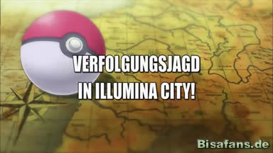 Ash macht sich also allein auf den Weg und stellt sich Knakrack gegenüber, das noch weiter auf den Turm hinauf flieht. Jedoch zögert Ash nicht, ihm über eine Außenleiter zu folgen, was nun – während es dunkel wird – von immer mehr Leuten und auch von Serena, die von Ashs Mut beeindruckt ist, verfolgt wird.