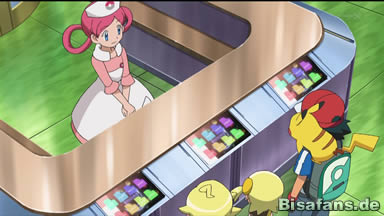 Während sich Serena auf den Weg macht, führt Citro Ash zu einem Pokémon-Center, wo er sich für die Kalos-Liga registrieren kann. Ash bedankt sich, doch Citro meint, es sei nicht nötig und bringt seine Bewunderung für den Mut Ashs, den dieser gezeigt hatte, als Knakrack durchgedreht war, zum Ausdruck. Schließlich kommen sie im PokéCenter an. Mithilfe des PokéDex, den er von Professor Platan bekommen hat, kann Ash sich nun registrieren und bekommt von einem Knuddeluff die Schatulle, in der er die Orden aufbewahren kann. Ash ist überrascht, doch die Joy erklärt ihm, dass in Kalos Knuddeluff die Helfer der Joys sind.