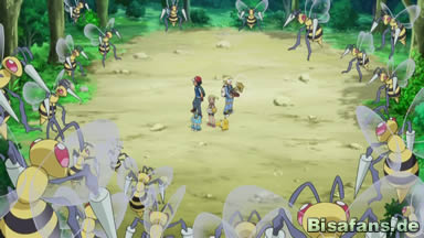 So einfach hat es Ash mit Dartiri nicht. Er erkennt, dass Froxy unbedingt kämpfen will, da es rächen will, dass das Dartiri Heureka zum Weinen gebracht hat. Heureka ist davon gerührt und Citro will Froxy mit einer Erfindung, die das Vogelpokémon beruhigen soll, helfen. Doch anstatt das Vogelpokémon zu beruhigen, verärgert der Ton seines Lautsprechers nur einige Bibor, die daraufhin Ash und die beiden Geschwister aus dem Wald jagen, ehe Citros Erfindung ganz explodiert, worüber sich Dartiri offenbar sehr amüsiert.
