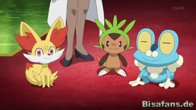 Da Ash nun ohnehin im Pokémon Center ist, ruft er nun auch noch Professor Eich an, um ihm Bescheid zu sagen, dass er gut angekommen ist und bereits sein erstes neues Pokémon der Region hat. Professor Eich ist begeistert, wird aber bald darauf von seinem Rotom geschockt. Daraufhin will sich Ash schließlich auf dem Weg zur ersten Arena machen. Citro, der zusammen mit Heureka vor dem Pokémon Center gewartet und eine Karte studiert hat, während Ash mit Professor Eich telefoniert hat, meint, dass sie über Route 4 am besten dorthin kommen, woraufhin sich Ash bedankt. Als er jedoch hört, dass Citro ganz so redet, als würde er selbst mitkommen wollen, ist er überrascht, doch Citro erklärt ihm, dass er an sich selbst arbeiten und so ebenfalls mit auf ein Abenteuer mitkommen will und Heureka ihn natürlich begleiten wird – sofern Ash nichts gegen Begleiter einzuwenden hat. Das hat Ash nicht und die beiden schütteln die Hände, was Heureka dazu bringt sich zu beschweren, da sie die Hände der größeren Jungen nicht erreichen kann. So gehen beide in die Knie, damit Heureka auch einschlagen kann und auch Froxy und Pikachu schlagen mit ein.