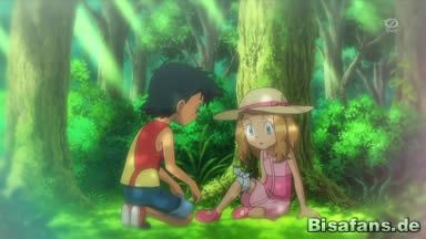 Auf dem Weg zurück durch den Wald fragt Heureka neugierig Serena, wieso sie eigentlich auf Reise gegangen ist, woraufhin Serena ein Taschentuch herausholt und es dem verwirrten Ash geben will. Sie erklärt, dass sie als Kind im Pokémon Sommercamp bei Prof. Eich in Alabastia war. Dabei wurde sie einmal von der Gruppe getrennt und verlief sich im Wald. Sie hatte Angst, so dass sie, als etwas im Gebüsch raschelte, weglaufen wollte, dabei jedoch stolperte und sich das Knie hart aufschlug. Das Rascheln stellte sich nur als ein Quapsel heraus, doch die nun komplett verängstigte Serena begann zu weinen. Da raschelte es erneut und Serena bekam erneut Angst, doch dieses Mal war es ein Junge, der sie sah und daraufhin beruhigte. Er stellte sich als Ash vor und wollte sie zu den anderen zurückbringen, doch sie konnte wegen ihres Knies nicht aufstehen. Daraufhin verband er ihr Knie mit seinem Taschentuch und half ihr auf, ehe er sie in die Stadt zurückbrachte.