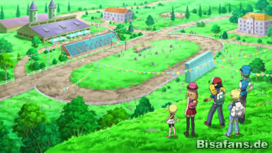 Serena hat das Taschentuch seither aufbewahrt und erzählt nun den anderen, dass sie sich entschlossen hat, als sie Ash im Fernsehen gesehen hat und sah, dass er nun auch in Kalos ist. So gibt sie ihm das Taschentuch zurück, doch Ash kann sich zwar an das Sommercamp, nicht jedoch an Serena selbst erinnern. Serena ist darüber zwar etwas enttäuscht, will aber weiterziehen. Da bebt der Boden unter ihren Füßen und sie können sich gerade noch rechtzeitig an die Seite stellen, ehe ein paar Männer auf Rihorn an ihnen vorbeirasen. Eine Officer Rocky, die den Rihornjockeys folgt, fragt sie, was sie bitte auf der Rennstrecke machen und sie erfahren, dass gerade ein Rihornrennen ausgetragen wird.