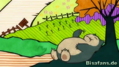 Relaxo beruhigt sich wieder und beginnt, einen riesigen Haufen von Pirisifbeeren zu essen, was seinen Tanz darstellt. Als es gegessen hat, geht es wieder zurück in die Berge und alles scheint in Ordnung zu sein, bis die Freunde bemerken, dass sie Citro vergessen haben.