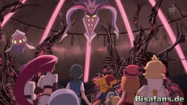 Ash, Serena und Mauzi kommen daraufhin in einen Hinterhalt, indem sie von ihren Freunden überrascht werden. Als Calamanero sie hypnotisieren will, zerkratzt Mauzi sich selbst und Ash das Gesicht, Serena zögert aber und wird hypnotisiert.