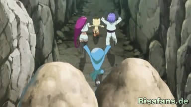 Team Rocket hat alles mitangehört und will vor den Freunden in der Höhle sein, weshalb Mauzi, Woingenau und James den Weg zur Höhle mit Steinen versperren, um ungestört zu sein. Schnell entdecken die drei die Höhle, in der sich eine Tür befindet, die Team Rocket natürlich öffnet und den Lucarionit entdeckt.