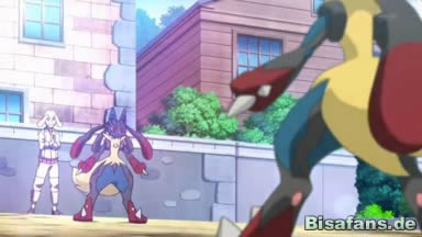 Connie nimmt an, dass Mega-Lucario nur etwas Zeit braucht, seine neue Kraft beherrschen zu können, als dieses kurz zögert. Da greift aber Pikachu schon mit Ruckzuckhieb an, Mega-Lucario kontert mit Power-Punch und scheint den Kampf vollkommen zu dominieren; es ist so schnell, dass man es gar nicht sehen kann.