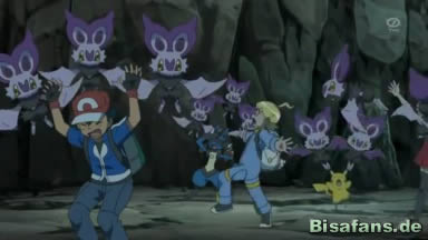 Schließlich laufen alle aus der Höhle, doch werden dabei Citro, Connie und Pikachu von den anderen getrennt. Alle begeben sich wieder in die Höhle, um nach den anderen zu suchen, wobei sie wieder auf eF-eM treffen. Serena meint aber, dass sie lieber draußen als in der Höhle suchen sollten, da die anderen sicherlich auch die gleiche Idee haben.
