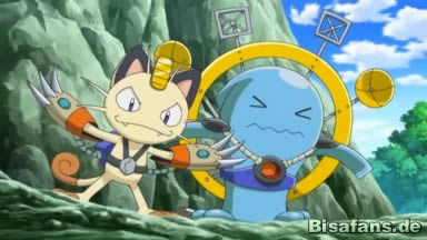 Währenddessen werden Connie, Pikachu und Citro von Team Rocket angegriffen. Citro ruft Scoppel, doch Iscalar, Irrbis, Woingenau und Mauzi sind durch Geräte, was Jessie als „Mecha-Mecha-Entwicklung“ bezeichnet, gestärkt, weshalb wenige Attacken ausreichen, Scoppel zu besiegen. Connie will ebenfalls kämpfen, kann dies aber ohne Lucario nicht, weshalb Citro Igamaro einsetzt. Doch auch dieses ist schnell in einer Zwangslage, weshalb Pikachu will, dass Connie ihm Befehle gibt.