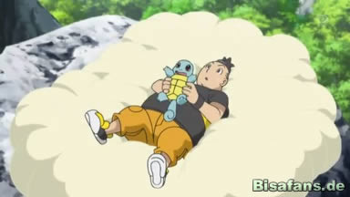 Citro und Heureka sind inzwischen beim Camp angekommen und bitten Professor Platan um Hilfe. Er organsiert sofort ein Rettungsteam. Team Schiggy hört alles mit an und macht sich Sorgen um Ash und Serena.