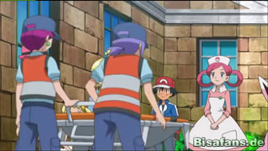 Als die Situation gerade anfängt aussichtslos zu wirken, trifft die Gruppe rund um Ash am Ort des Geschehens ein und verjagt die drei Bibor. Nachdem klar wird, dass niemandem etwas passiert ist, wird schnell deutlich, woher die beiden Trainer der beiden Psiaugon sich kennen. Sie sind Geschwister, der Trainer Blake ist dabei der kleinere Bruder von Trainer Hajo.
