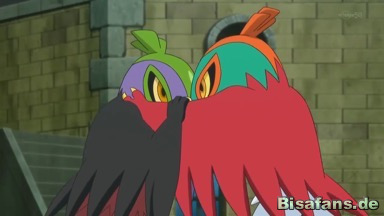 Ash will eingreifen, doch die beiden Resladero greifen da ein. Team Rocket ruft Maaiika und Bakeccha und lässt die Pokémon angreifen. Von einem Psystrahlt wird dabei Pikachu außer Gefecht gesetzt, während die Resladero allen Attacken ausweichen können. Schließlich stehen sie Rücken an Rücken und erkennen, dass sie zusammenarbeiten müssen. Daher geben sie einander die Hand.