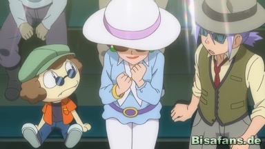 Kurz, bevor das Stück beginnt, übt Ash hinter der Bühne noch einmal mit seinem Pokémon. Das wird von Helmuts Resladero beobachtet.