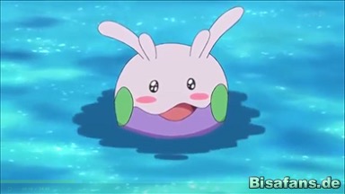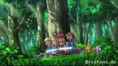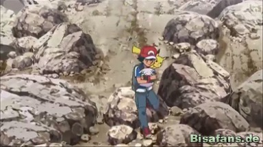 Ash sieht sich etwas um und entdeckt einen Fluss. Er nimmt das schwache Pokémon und bringt es zum Fluss. Da der Weg zum Fluss jedoch sehr steinig ist, warnen seine Freunde ihn davor. Schnell rutscht er aus und stolpert den Weg herunter. Direkt vor ihm liegt jedoch ein riesiger Fels im Weg, gegen welchen er, Pikachu und Viscora stoßen würden. Jedoch kann Ash rechtzeitig ausweichen. Als ein zweiter Fels vor ihnen liegt, setzt Pikachu Eisenschweif ein, um ihn zu zerstören. Dies gelingt ihm aus und Ash scheint beinahe am Fluss zu sein, als er über einen Stein stolpert und Viscora ihm aus der Hand fliegt. Ash fängt es jedoch im Flug auf und beide landen gleichzeitig im Wasser.