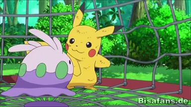 Die Pokémon von Team Rocket machen witzige Scherze, während Pikachu immer noch versucht, sich zu befreien. Weder sein Donnerblitz noch direkte Angriffe gegen den Käfig funktionieren. Nach einigen Angriffen gibt das Gitter jedoch endlich etwas nach und Viscora kann sich heraus zwängen. Pikachu kann dies jedoch nicht. Darauf kommt Viscora zurück und umgibt Pikachu mit seinem Schleim. Nun sollten beide hinaus kommen können, würde nicht Team Rocket auftauchen.