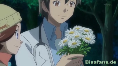 Weiß stellt sich als Arzt vor und erkennt, dass Jessie offenbar Stachelsporen ausgesetzt war. Daher gibt er ihr eine Amrenabeere und füttert sie sogar, woraufhin sich Jessie Hals über Kopf in Weiß verliebt.