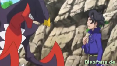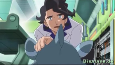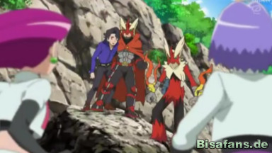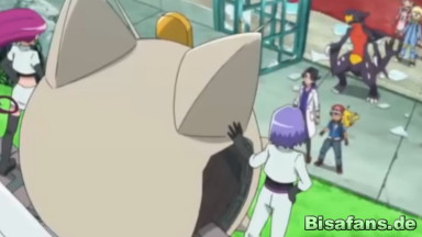 Da Mauzi das Gerät mit dem Mega-Stein nicht öffnen kann, setzt James sein Iscalar ein und sorgt nun dafür, dass eine Rauchwolke das Fahrzeug trifft, worauf Professor Platan aussteigt und nach seinem Knackrack ruft. Mit Radiowellen will Team Rocket dafür sorgen, dass ihnen das Pokémon nicht entwischt, sobald sie den Mega-Stein auf es einsetzen. Zusätzlich haben sie es jetzt unter ihrer Kontrolle, also bindet James dem Knakrack den Knakracknit um den Hals. Mithilfe des anderen Steins möchte James nun die Mega-Entwicklung auslösen und hält ihn in die Luft.
