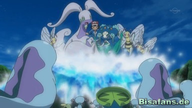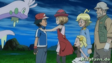 Die Pokémon und Trainer laufen zu den Geretteten und Serena umarmt Ash beinahe, während Florges Floette wieder in die Arme nimmt. Auch Pikachu und Dedenne finden wieder zu ihren Trainern.